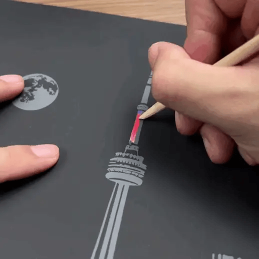 Engage in a therapeutic art session that promotes mindfulness and relaxation. Scraping off the gray coating to reveal vibrant colors offers a calming escape from daily routines.